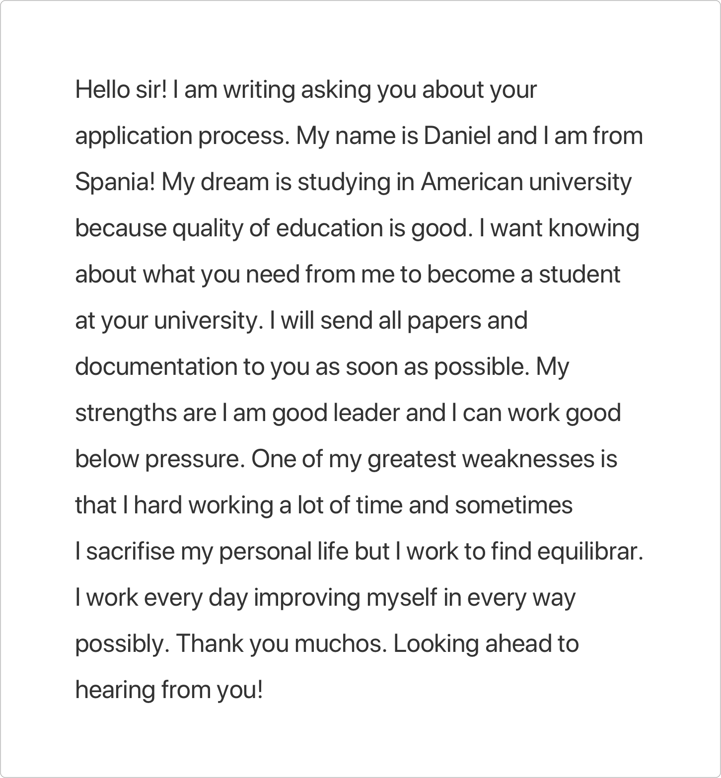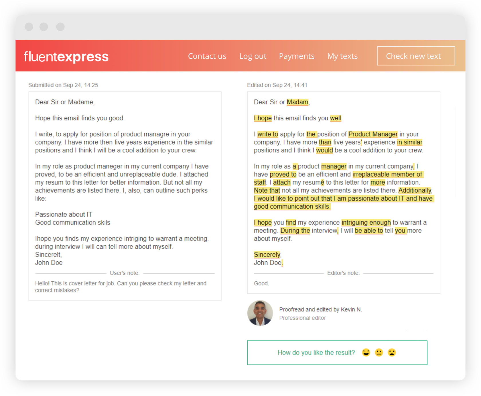 Любые — мы предлагаем редактирование различных текстов, начиная от электронной переписки и заканчивая научными статьями. Ты можешь проверить одно предложение, а можешь загрузить целый роман. В зависимости от размера текста время проверки будет разным.